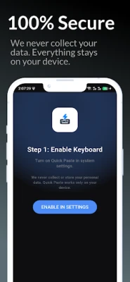 Enable: Open the app and follow the simple 2-step setup to enable the "Quick Paste" keyboard.