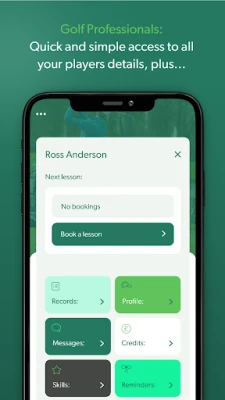 Connect with your Golf Pro on a whole new level. Book lessons 24/7 with unlimited access to your Golf Professional’s ‘smart diary’, along with in app direct payment. Keep track of your lessons with prompts and notifications. Review lesson records stored in the app, hone your game in the skills zone, store yardages and much more…